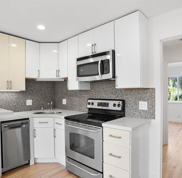 Recent updates include fresh paint and refinished hardwood floors. Additional perks feature a full in-unit washer/dryer, a private storage room, and coveted entry-level parking.