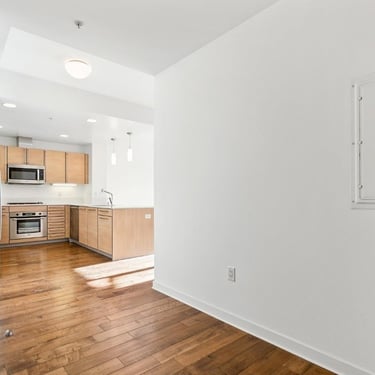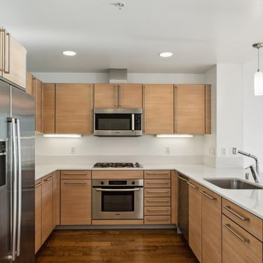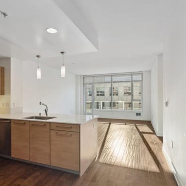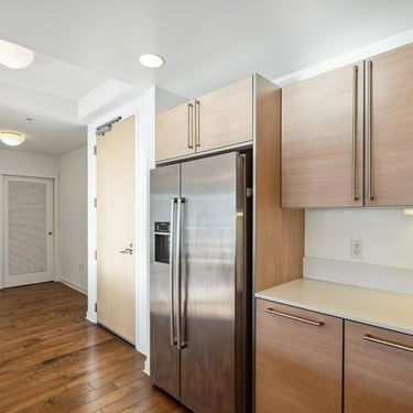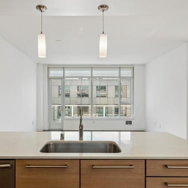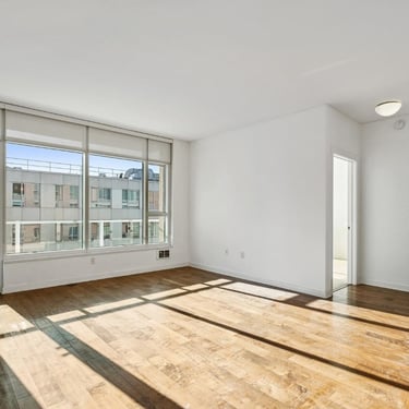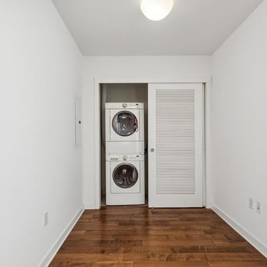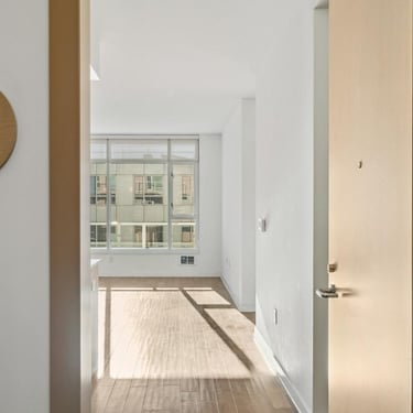 This bright one-bedroom + den residence blends elegant design with modern functionality, featuring floor-to-ceiling windows, in-unit laundry, sleek Studio Becker cabinetry, Caesarstone countertops, and premium stainless-steel appliances.