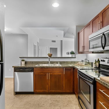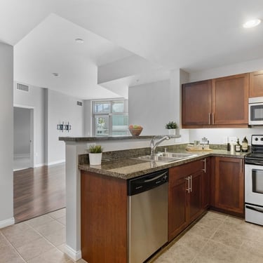 Live vibrantly in this meticulously maintained condo at Park Terrace, steps from Petco Park. Floor-to-ceiling windows flood the space with light, framing stunning Coronado Bay Bridge views from the glass-enclosed balcony. The open layout blends elegance and function, featuring upgraded flooring, a gourmet kitchen (granite counters, stainless appliances, cherry cabinetry), and in-unit laundry. Fresh paint and under-cabinet lighting add turnkey polish.