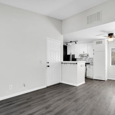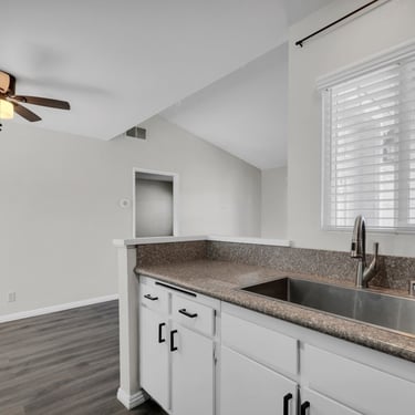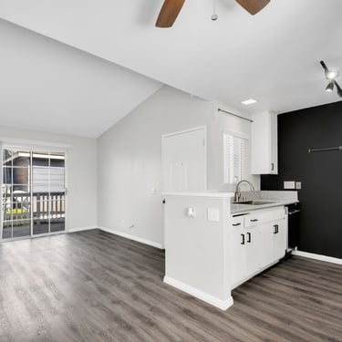 Bright and inviting, this open-concept condo features vaulted ceilings, laminate hardwood flooring, and a dual-pane glass slider opening to your private balcony—ideal for relaxing or entertaining. The remodeled kitchen includes stainless steel appliances, while the spacious bedroom offers a walk-in closet with built-in organizers and an ensuite bathroom with a reglazed tub.